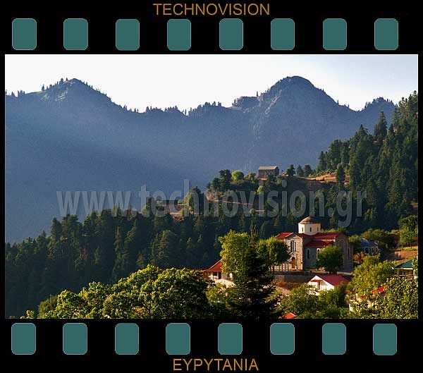 Επινιανά. Ο Καθεδρικός ναός του Αγίου Γεωργίου και απέναντι στο ''Καπριόρι'' ο νεόχτιστος ναός των Αγίων Αναργύρων.