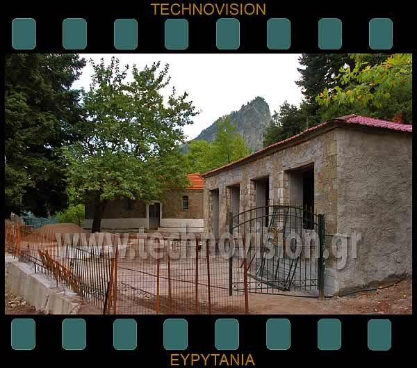 Φτέρη. Το σχολείο υπο ανακατασκευή και η Αγία Παρασκευή στον Πλατανιά.