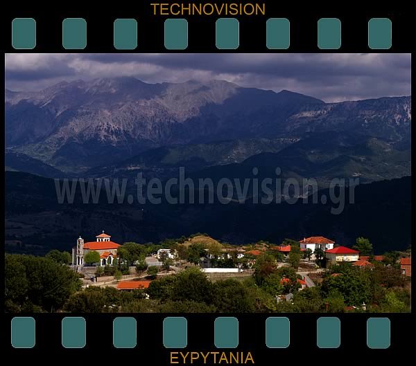 Βαλαώρα. "Παλιοχώρι". Η Παναγία η Τραζινίτσα με φόντο τον Καλόγερο (2040μ.).