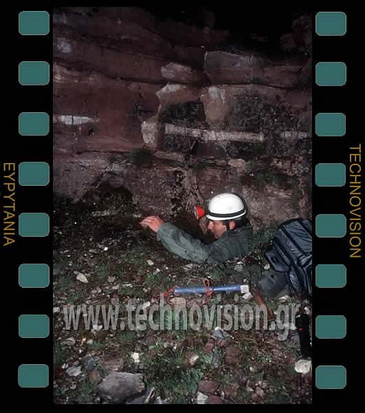 Λόγο της στενότητας και της κατηφορικής εισόδου του σπηλαίου, μπαίνουμε όπισθεν.