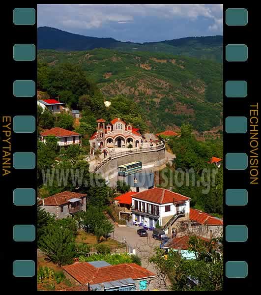 Κορίτσα. Το κέντρο του χωριού με τον ναό του Αγίου Νικολάου του Νέου.