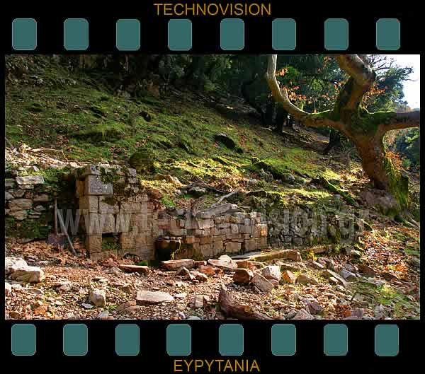 Ανατολική Φραγκίστα. Θέση: "Βρύση του Κοσμά". Εδώ η μία από τις δύο βρύσες, η μεταγενέστερη. Δεξιά στον αιωνόβιο πλάτανο η βρύση του "Κοσμά".