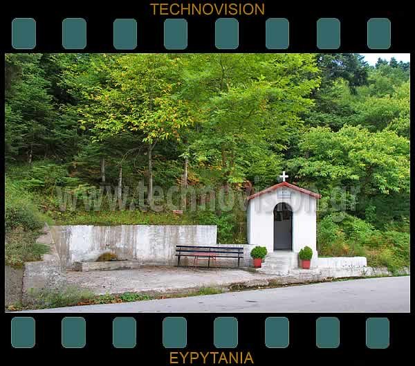 Το ξωκλήσι και η βρύση της Αγίας Ευφροσύνης, δυτικά του χωριού στο παλιό δρόμο "Λάσπης" -