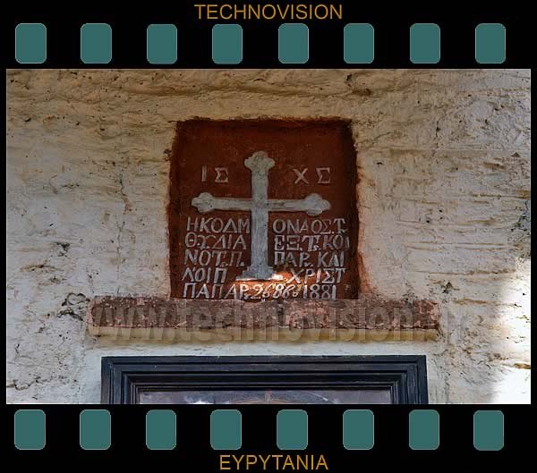 Παπαρούσι. Η επιγραφή της Αγίας Παρασκευής στην νότια είσοδό της.