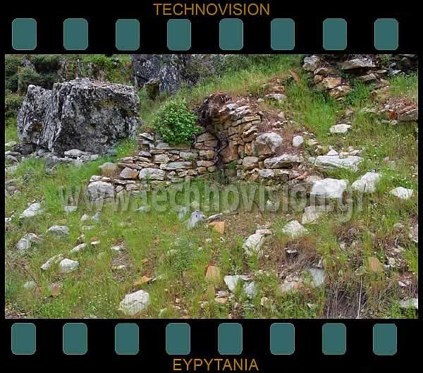 Κτίσμα το οποίο αποκαλύφθηκε κατά την διάνοιξη δρόμου. Διακρίνονται και διάσπαρτα κεραμικά θραύσματα.