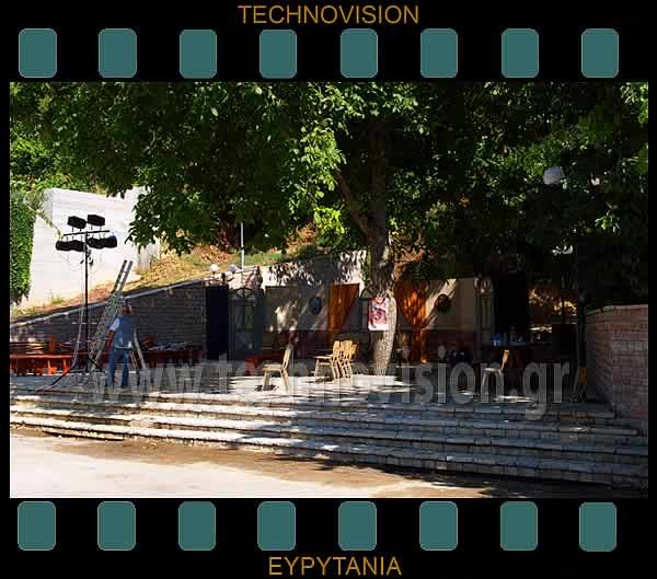 Πετράλωνα. Τα καλοκαίρια γίνονται πολλές πολιτισμικές εκδηλώσεις στα χωριά της Ευρυτανίας. Εδώ προετοιμασία θεατρικής παράστασης στη πλατεία των Πετραλώνων.