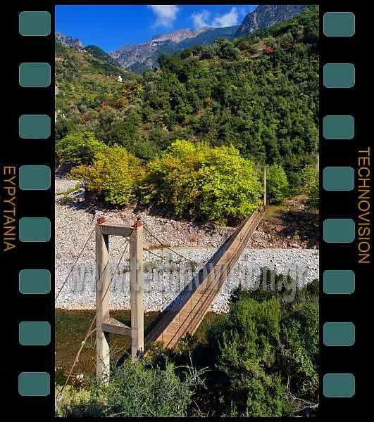 | -Το ξυλογέφυρο του Τρικεριώτη ποταμού στη θέση "Αμπελότοποι", που συνδέει τα χωριά του Ασπρόπυργου με την Χελιδόνα και το Δερμάτι. Κατασκευάστηκε το 1968 μαζί με κείνο του Κρικελλοποτάμου στο ύψος της Καστανούλας μετά από θανατηφόρο ατύχημα. Πάνω αριστερά η Χελιδόνα. | |||||||||