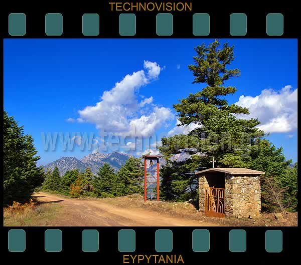 Ασπρόπυργος. Δυτικά του χωριού ο Άγιος Γεώργιος. Εδώ το καμπαναριό του με το εικόνισμα. Λίγο πιό μέσα (αριστερά) ο ναός.