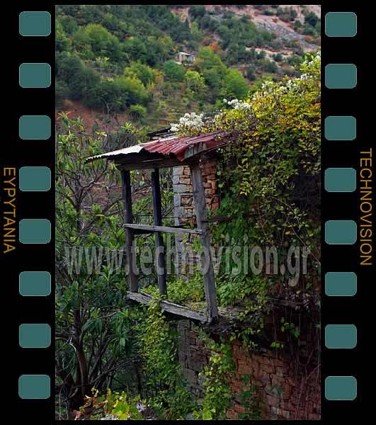 Λογγιές. Το Σταθέικο σπίτι, με φόντο την Καστανούλα.