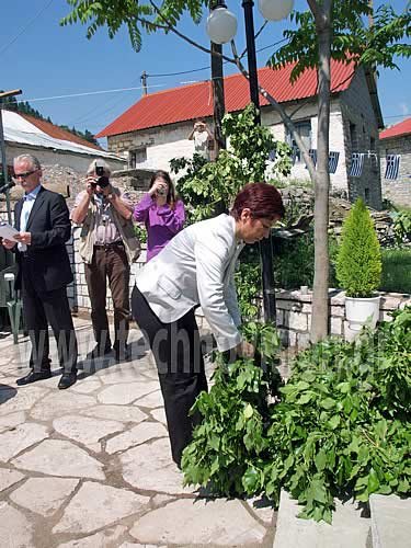 Κατάθεση στεφάνου από την Πρόεδρο του Συλλόγου Σαρακατσάνων Σερρών ο "Κατσαντώνης" κ. Άννα Μπαζδάνη.
