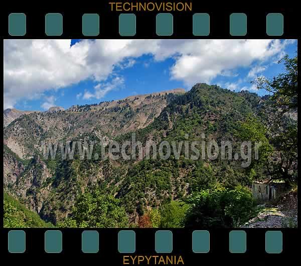 Εκκλησιές. Απέναντι τα Καυκία (1607μ.) και η Τσούμα (1487μ.).