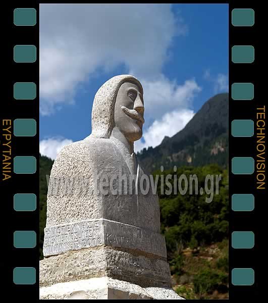 Μοναστηράκι. Η προτομή του Κατσαντώνη στο κέντρο του χωριού.