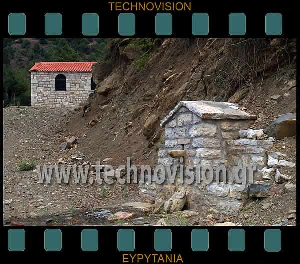 Βρύση και ο νεόχτιστος ναός του Αγίου Νικολάου.