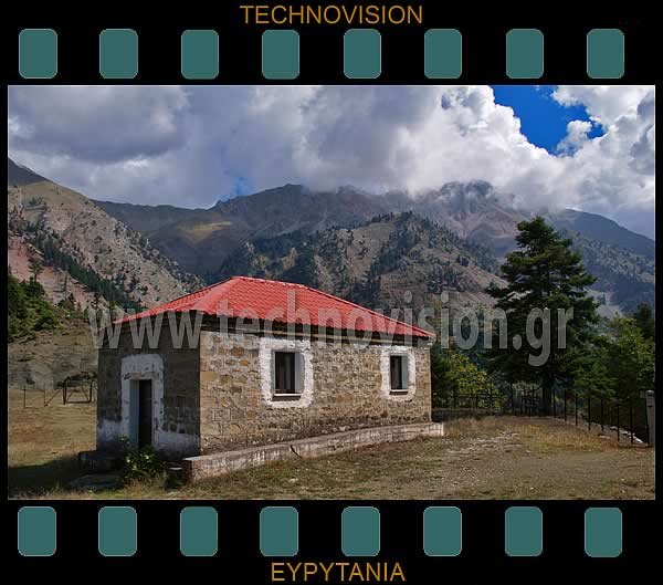 Μπαλτενήσι. Το εξωκκλήσι των Αγίων Κωνσταντίνου και Ελένης με φόντο τον "Καλόγερο" Λιάκουρα (2040μ.).