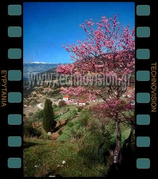 Κυπαρίσσι. Άποψη του χωριού με το επιβλητικό του κυπαρίσσι.