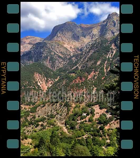 Βασιλέσι. Απέναντι οι ναοί του Αγίου Αθανασίου και Αγίου Δημητρίου, στις πλαγιές της Πυραμίδας (2002μ.).