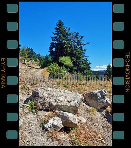 Θέση Πέτρα. Λαξευμένος ογκόλιθος κτίσματος παρασυρμένος από τον δρόμο.