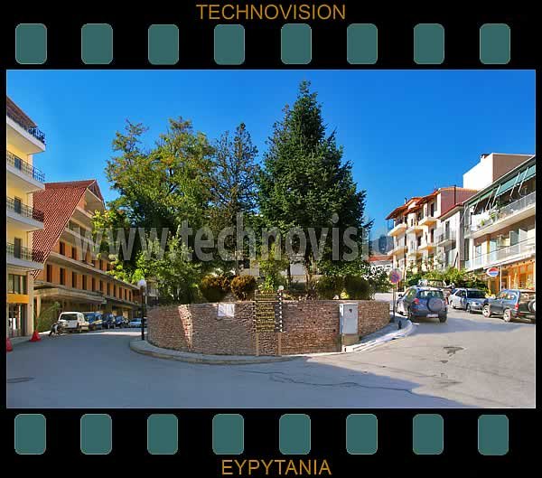 | Οδός Εθνικής Αντιστάσεως. Στο κέντρο της φωτογραφίας υπήρχε το Δημοτικό Σχολείο Καρπενησίου. Σε αυτό λειτούργησε το Παιδαγωγικό Φροντιστήριο Στερεάς της Π.Ε.Ε.Α. (Κυβέρνηση βουνού) το 1944. Διακρίνεται η μαρμάρινη αναμνηστική πλάκα εντοιχισμένη στον τοίχο. |