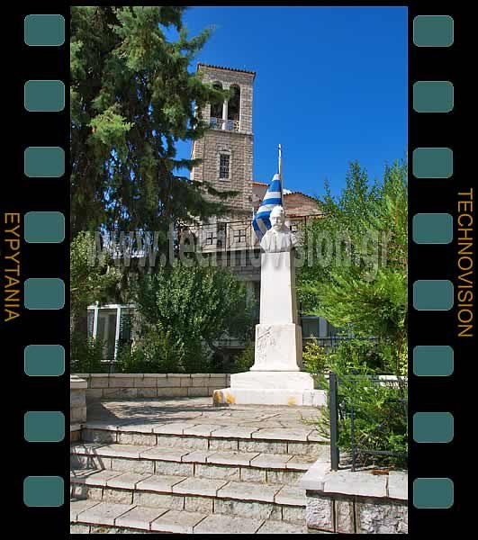Η προτομή του Μάρκου Μπότσαρη στην ομώνυμη κεντρική πλατεία της πόλης. Κάποτε κοίταζε προς το Κεφαλόβρυσο (όπως πρέπει μιας και κει έπεσε), αλλά λόγω τουριστικής κίνησις κοιτάζει τη πλατεία (μην θεωρηθεί άξεστος στους ξένους).
