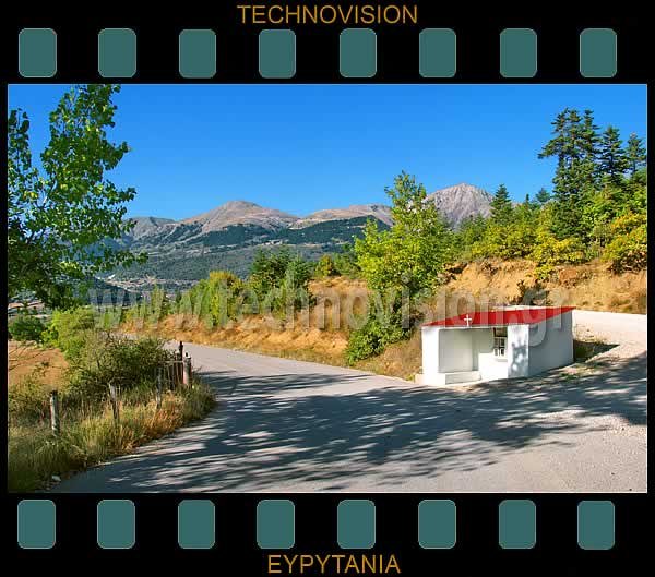 Εικόνισμα στη "Μεσοχώρα". Στο βάθος το Καρπενήσι.