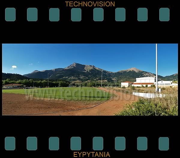 Αθλητικό κέντρο Καρπενησίου. Στο φόντο το επιβλητικό Βελούχι (2312μ.).