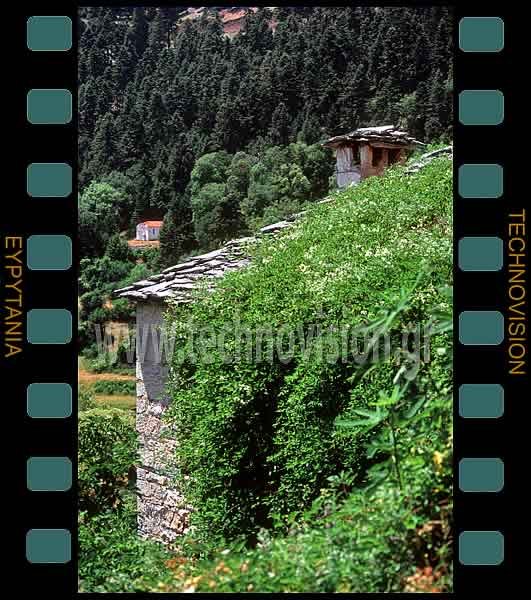 Κορυσχάδες. Με φόντο το ξωκλήσι του Αγίου Ιωάννη.