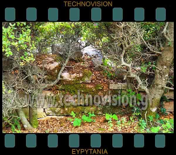 Σπαρτιάς. Στην απέναντι πλευρά, τα χαλάσματα των σπιτιών.