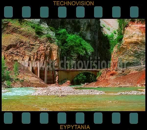 που περνάει πάνω στην πέτρινη γέφυρα. Δίπλα της, τα θεμέλια της καινούριας. Η φωτογραφία του 1994.