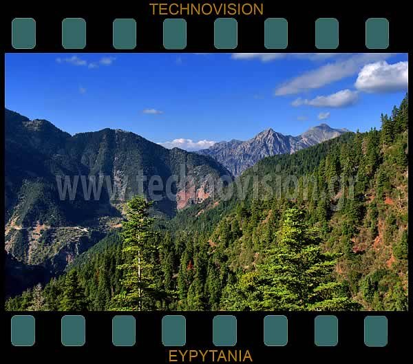 Στο βάθος αριστερά ο Άγιος Γεώργιος και οι Ασωμάτες. Το βουνό δεξιά, η Χελιδώνα (1973μ.).
