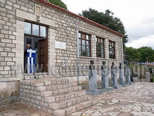 Ο Καπετάν Ερμής (Βασίλης Πριόβολος) στο Ιστορικό Σχολείο της Βίνιανης.